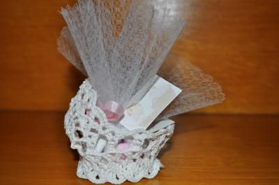 et les bonbonières au crochet réalisées pour le baptême de ma fille
